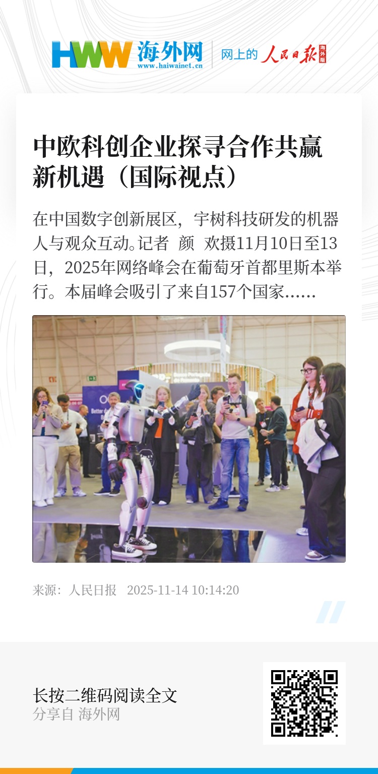 11月10日至13日,2025年网络峰会在葡萄牙首都里斯本举行。本届峰会吸引了来自157个国家和地区的7万余名与会者,2700多家初创企业参展,规模与影响力均创历史新高。与会各方围绕人工智能、绿色技术、Web3.0与数字治理等全球科创热点深入研讨。多家中国企业携最新科创产品与技术集中亮相,凭借硬核实力吸引大批客商与观众驻足。