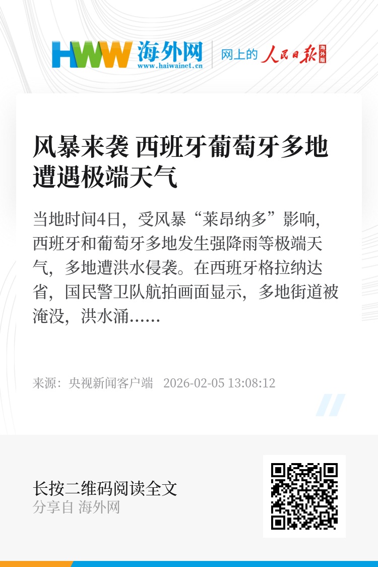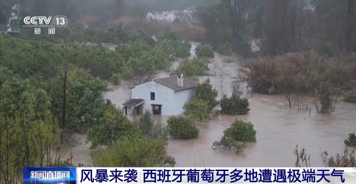 当地时间4日,受风暴“莱昂纳多”影响,西班牙和葡萄牙多地发生强降雨等极端天气,多地遭洪水侵袭。